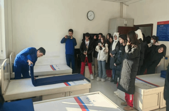 学生们参观了消防救援站的宿舍,消防救援人员示范了整理内务的规范流程,让学生们了解消防队伍严谨的生活作风。随后学生代表们试穿战斗服、空气呼吸器等专业消防装备。