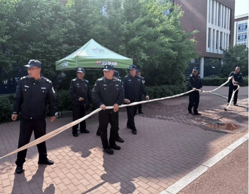 在消防水带演练环节,防火科工作人员向微型消防站队员详细讲解了消防水带的使用技巧。讲解结束后,微型消防站队员进行了水带铺设与消火栓连接的实操练习。