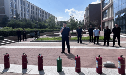 为不断提升食堂工作人员的消防安全意识,增强其火灾预防及应对能力,6月5日,我处联合九台区卡伦消防救援站,对学生第一食堂工作人员进行了消防应急疏散演练及消防安全培训。